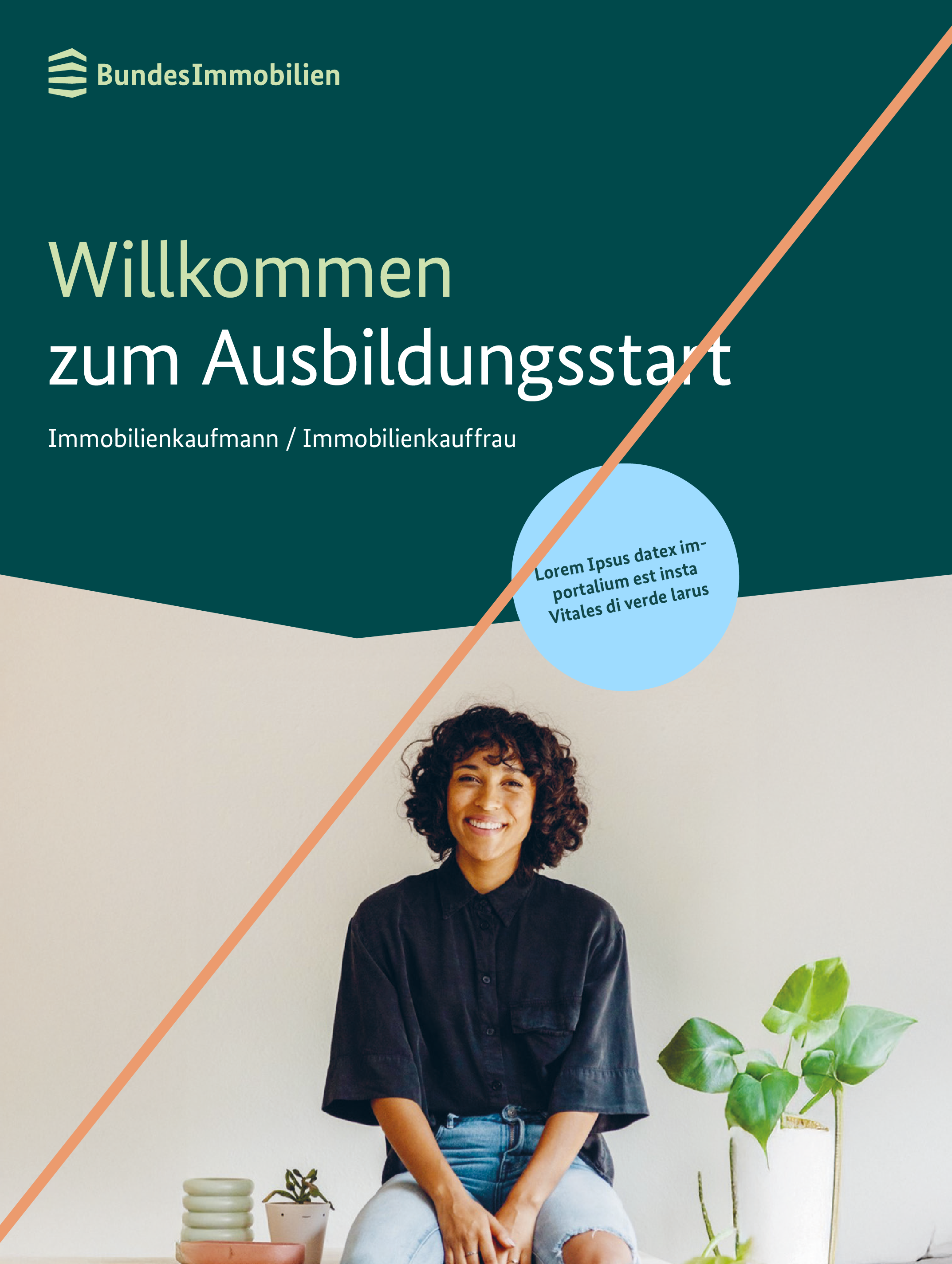 Die Größe der Störer im Layout ist flexibel. Bei der Wahl der Größe sollte stets auf ein ausgeglichenes Verhältnis zwischen Störer und Headline geachtet werden. Ein Störer kann im Layout sowohl auf dem Bild, auf der Farb-/Winkelfläche als auch überlappend platziert werden. Dabei befindet er sich stets innerhalb des Satzspiegels und hält ausreichend Abstand zu Logo und Textelementen.