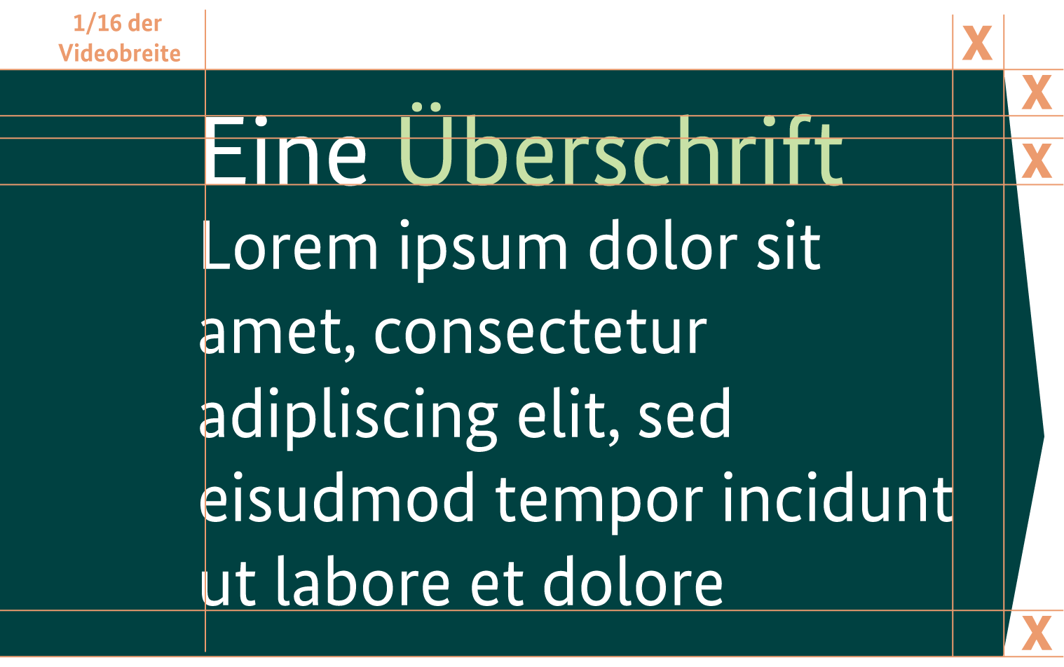 Der Text hat von allen Seiten mindesten 1/16 der Videobreite als Abstand zur Winkelfläche.