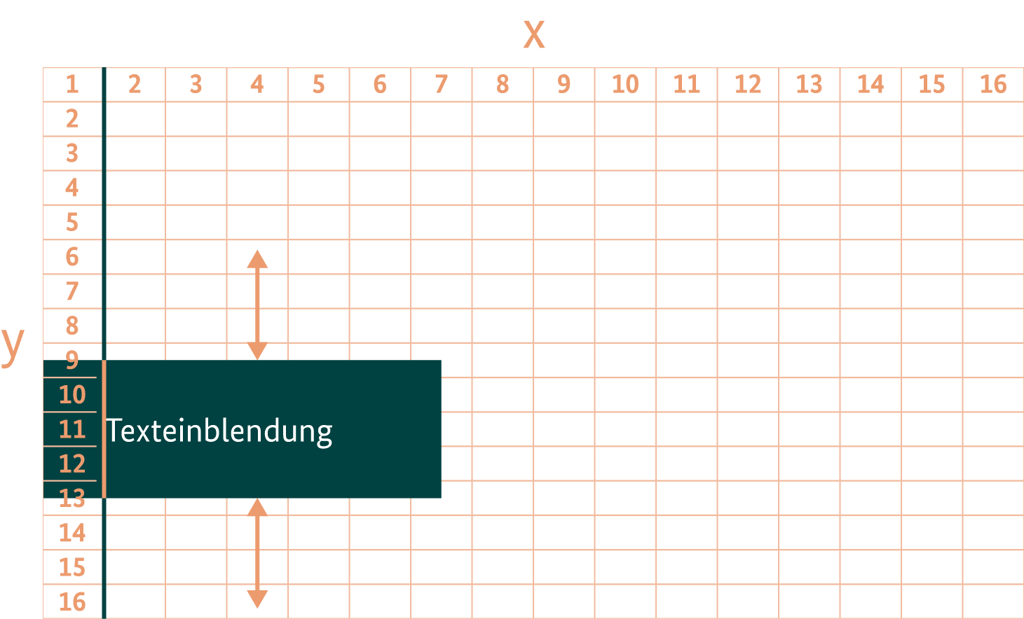 Die vertikale Position y-Position der Textflächen ist variabel.